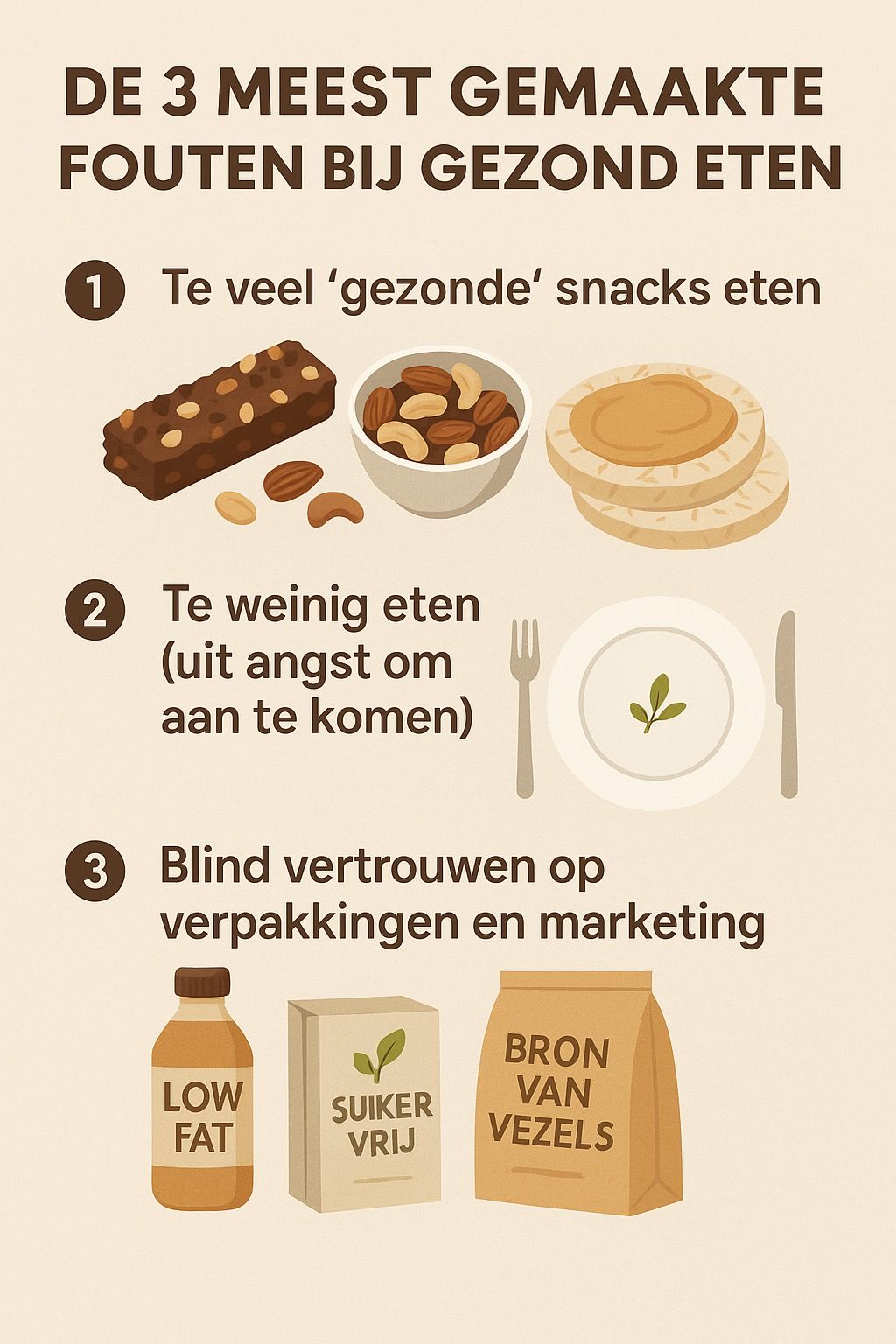 Gezond eten lijkt simpel: kies verse producten, laat junkfood staan, en je zit goed… toch? Helaas is het niet altijd zo zwart-wit. Veel mensen die bewust bezig zijn met voeding, maken onbedoeld fouten die hun gezondheid of doelen saboteren. Hieronder bespreek ik de drie meest voorkomende valkuilen bij gezond eten – en hoe je ze kunt vermijden.